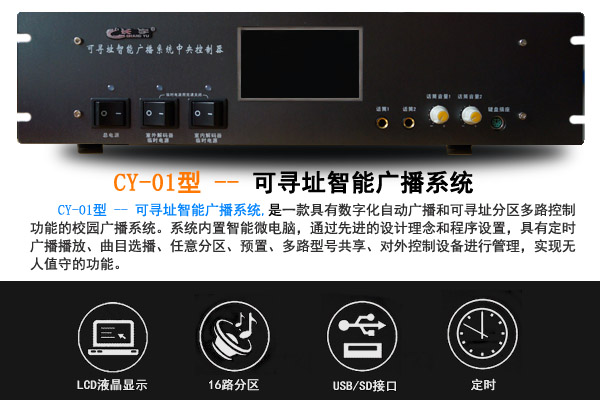 可寻址智能广播系统,完全能满足学校广播系统需要的所有功能,兼顾老师减负功能,已广泛安装于各中小学、幼儿园,反映良好